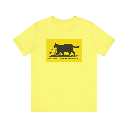 I'll Tread Wherever I Want | Funny Cat Don't Tread on Me, Gadsden Flag, No Step On Snek | Classic Unisex Jersey Short Sleeve Tee